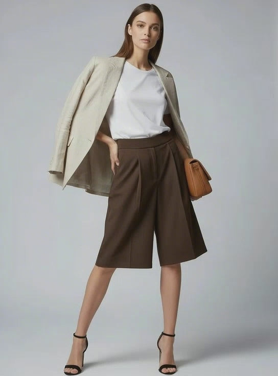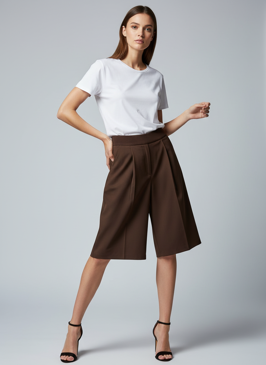 Elevate your wardrobe with the Seraphina Silk-Waist Culotte, a masterclass in modern tailoring and textile luxury. Designed for the woman who values effortless elegance, these shorts bridge the gap between a polished trouser and a relaxed summer staple.